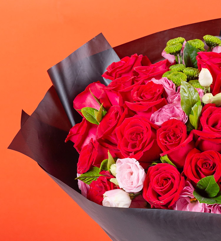 - 花材:卡羅拉玫瑰19枝,粉色洋桔梗5枝,綠小菊3枝,梔子葉10枝