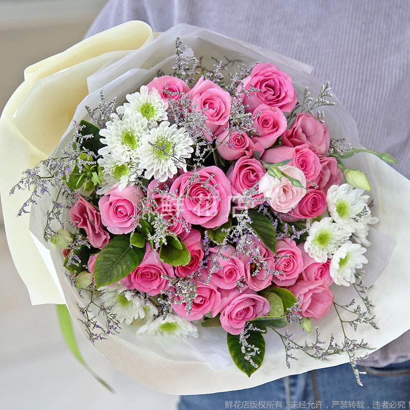 1、鮮花為手工制作,實(shí)際花束可能會(huì)與圖示有些出入,但我們保證鮮花主花材品種、新鮮程度、數(shù)量、顏色與說(shuō)明一致。