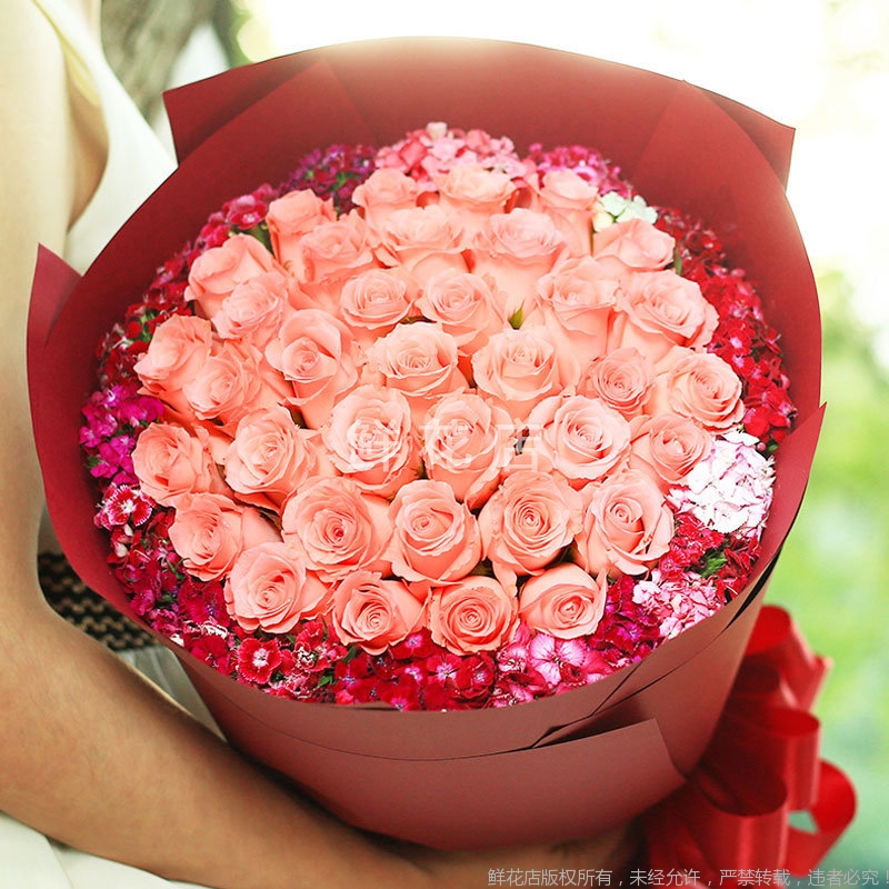 1、鮮花為手工制作,實(shí)際花束可能會(huì)與圖示有些出入,但我們保證鮮花主花材品種、新鮮程度、數(shù)量、顏色與說(shuō)明一致。