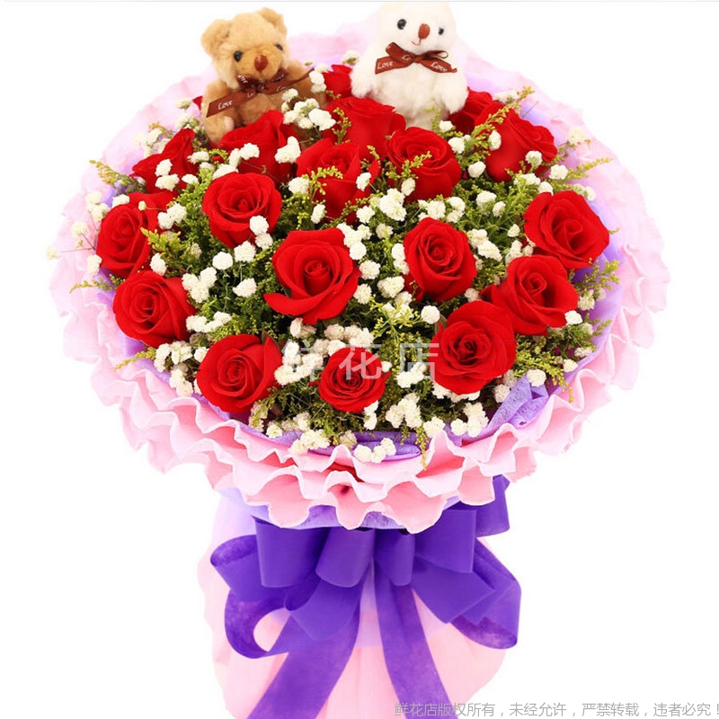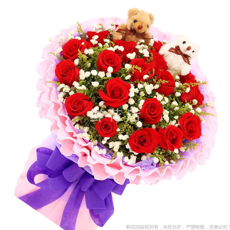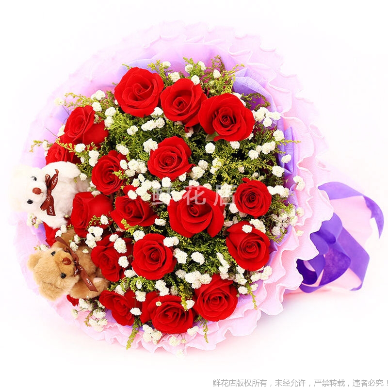 1、鮮花為手工制作,實(shí)際花束可能會(huì)與圖示有些出入,但我們保證鮮花主花材品種、新鮮程度、數(shù)量、顏色與說明一致。