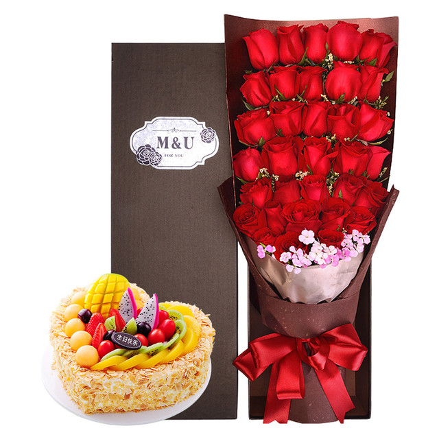 生日鮮花 生日蛋糕 19枝玫瑰 99枝紅玫瑰