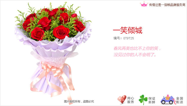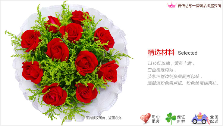2、由于地域或季節的限制,需要更換主花材時,我們將聯系您提出更換建議, 如在有效配送時間內得不到訂貨人的確認,將采用同等價值或相同寓意的花材代替。