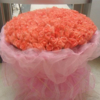顧客把99枝粉玫瑰換成了365枝,很大的一束花