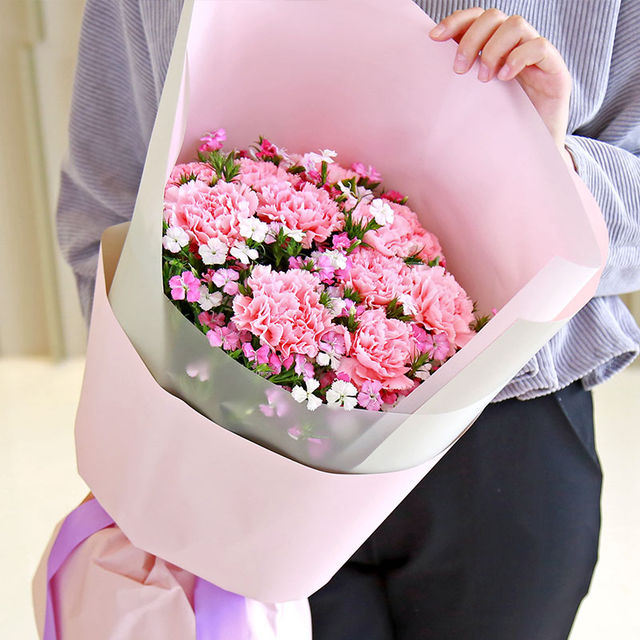 花材:11枝粉色康乃馨包裝:白色條紋霧面紙內襯、粉色雙面紙外包,精美蝴蝶結;鮮花花語:愿這和煦的春風,給你帶去溫暖;愿歡樂與幸福,永遠充溢在你的每一寸時光里
