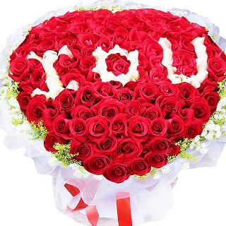 花材:99朵紅玫瑰,相思梅