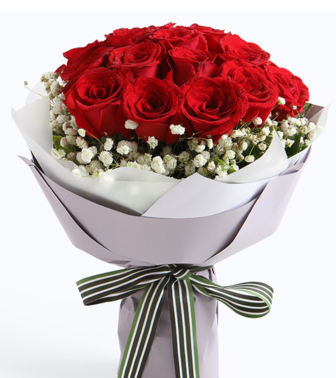 花材:紅玫瑰19枝,滿天星圍繞包裝:白色opp霧面紙 淺紫香芋紫人造雙面紙 白綠粗羅紋帶;鮮花花語:永遠愛你此情不渝。想念那條街,想念與你遇見的地方,想念和你的第一次牽手……永遠無法忘記這些往昔的喜悅,它將永駐心間!